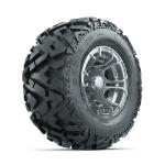 GTW® Spyder Silver 10 in Wheels with 22x11.00-10 Rogue All Terrain Tires – Set of 4