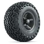 GTW Spyder Machined/ Matte Grey 10 in Wheels with 22x10-10 Timberwolf All Terrain Tires – Set of 4