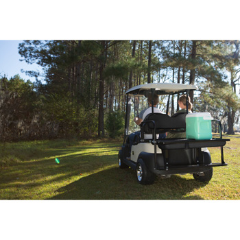 - Stock springs were designed to support a couple of golf bags. The addition of a rear seat kit can add up to 150 lbs. plus the weight of 1-2 passengers.